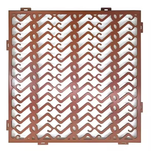 Caractéristiques des panneaux simples en aluminium sculptés et perforés.les dimensions et les densités des trous sont combinées pour créer un effet dynamique sur la surface du panneau en aluminiumIl peut être transformé en différentes formes en fonction de différents environnements extérieurs.rendre les lignes plus vives et élégantesIl s'efforce de devenir une nouvelle génération de produits traditionnels qui sont personnalisés et artistiques.et disponible dans une variété de stylesLes motifs peuvent être personnalisés selon les préférences personnelles, soulignant l'individualité.n' accumule pas de poussière et est facile à nettoyerLors de l'installation, la quille est fixée au plafond le long de la ligne horizontale et le panneau est simplement branché, ce qui facilite l'installation et le démontage.et pratique pour l'entretien et la réparation.